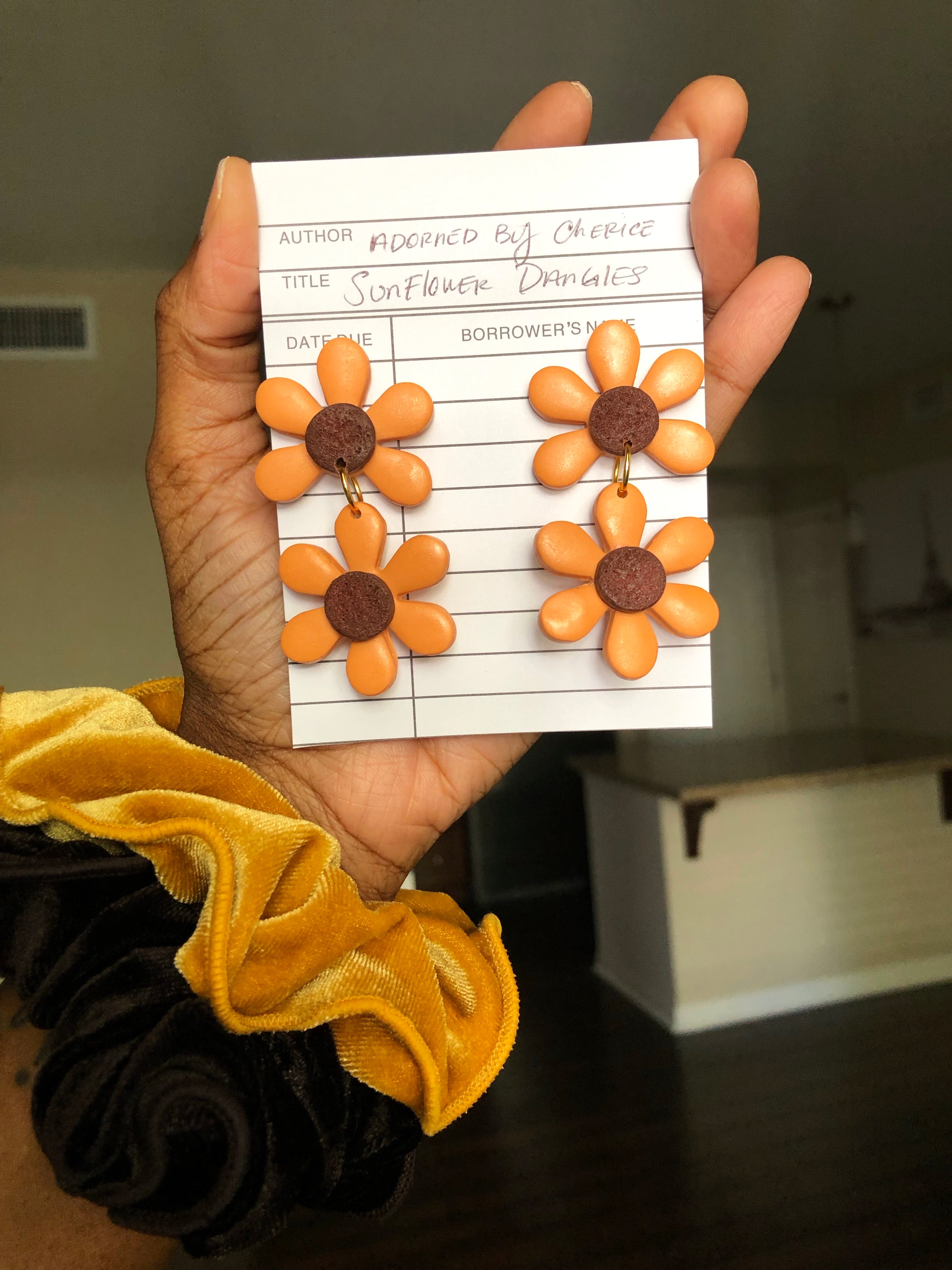 Sunflower Polymer Clay Earrings, handmade polymer clay earrings by Adorned By Cherice. California Artist